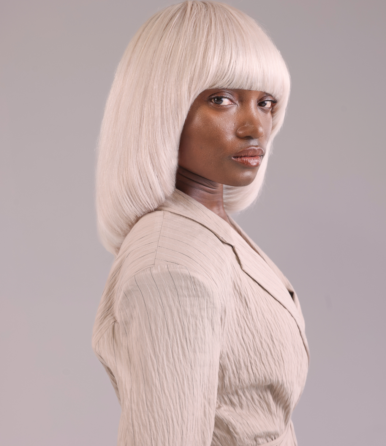Soft‑focus precision and pure contrast: this blunt bob captivates with crisp, defined contours that gently, femininely frame the face. The exacting cut creates a modern silhouette that’s both soft and elegant, resulting in a confident, stylish look full of personality.